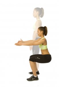Statikus guggolás 2x 30 mp- a térdek nem mennek a lábujjak vonala elé.